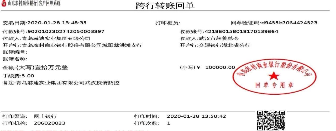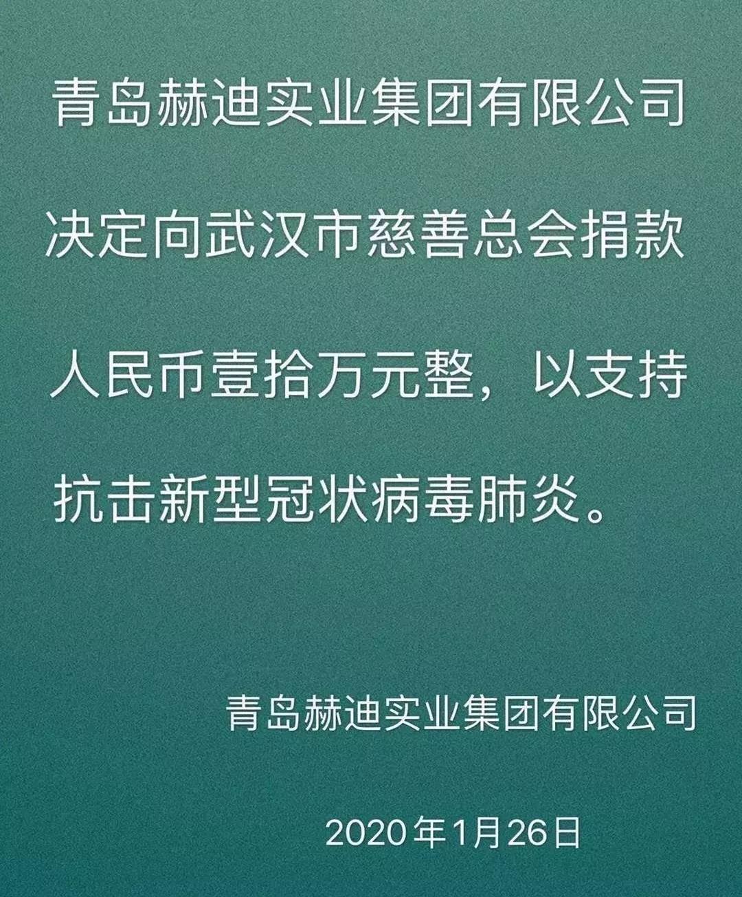 眾志成城,共克時(shí)艱。青島赫迪實(shí)業(yè)集團有限公司是一家為動(dòng)車(chē)檢修的企業(yè),該企業(yè)負責人楊成群表示:“新型冠狀病毒肺炎疫情牽動(dòng)著(zhù)所有人的心,社會(huì )各界通過(guò)各種方式關(guān)心和支持武漢當地的疫情防控,體現了社會(huì )大愛(ài)和守望相助的精神。我們相信,在黨中央及各級黨委政府的領(lǐng)導下,定能盡快控制疫情,早日打贏(yíng)這場(chǎng)沒(méi)有硝煙的戰爭。我們也希望通過(guò)捐款的方式能為疫病防控盡一份綿薄之力。相信我們社會(huì )各方眾志成城,一定會(huì )共度時(shí)艱,期待每一位奮斗在防控一線(xiàn)工作的守衛者凱旋而歸,也祝愿大家在新的一年都能平安順遂!”